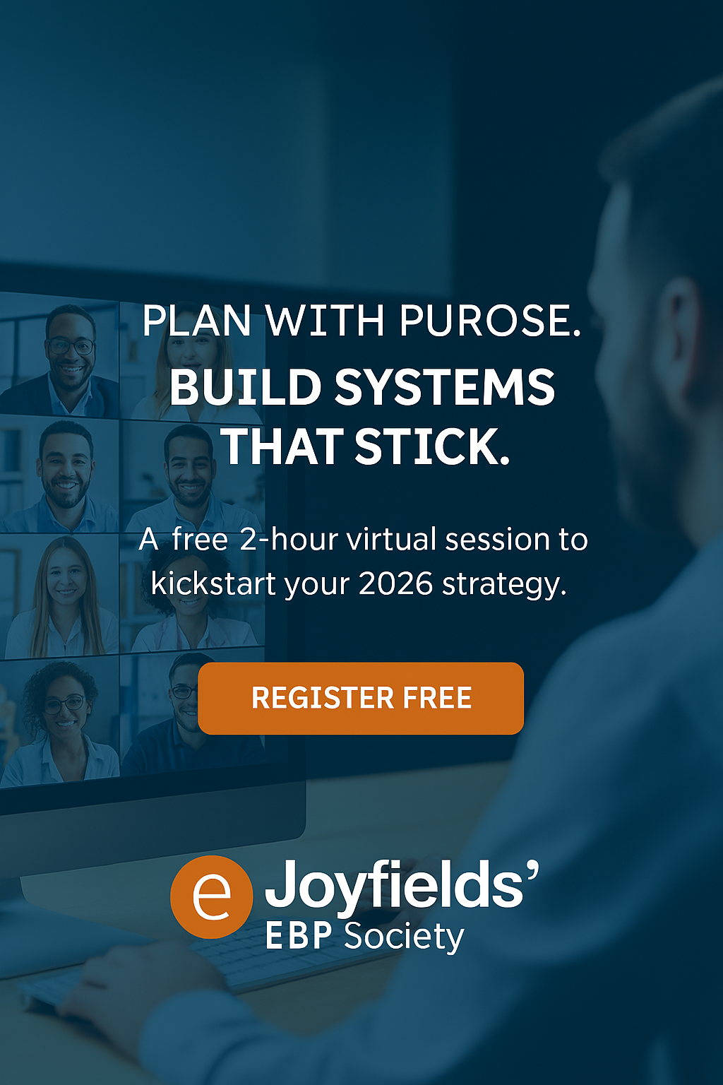 • Masterclass Systems Preview: Get a first look at our newly elevated Joyfields' EBP Society training systems for frontline staff, supervisors, supervisors, trainers and executives.